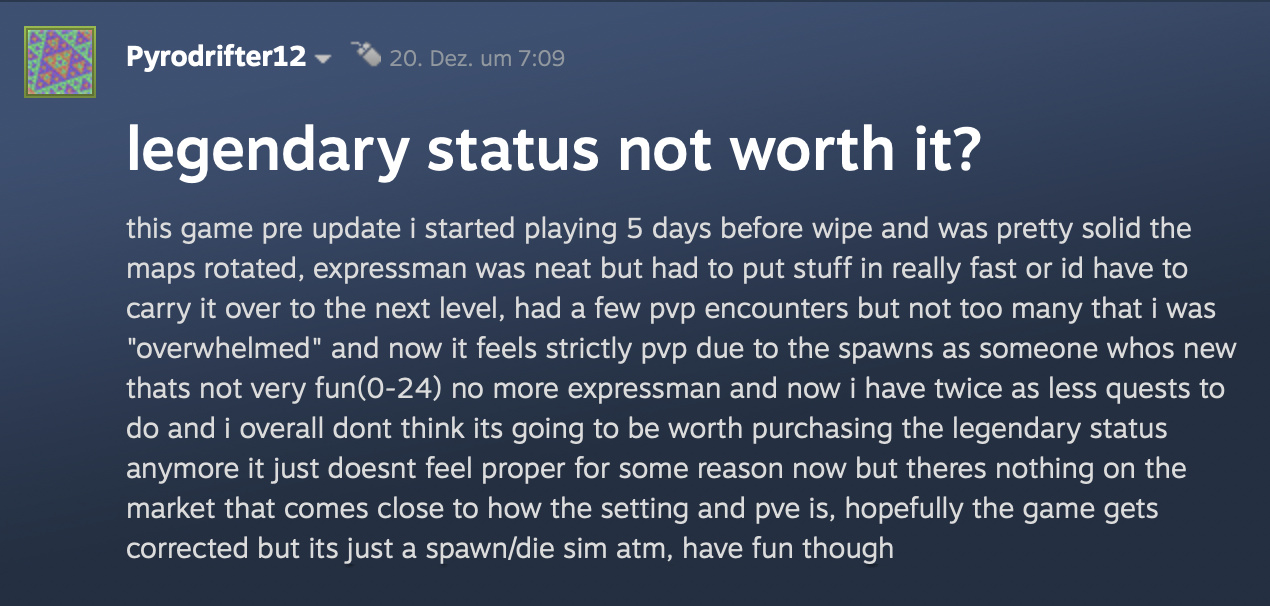 Die Enttäuschung vieler wird schnell deutlich, wenn man sich die Kommentare zum Spiel auf Reddit ansieht. Da es sich nicht um ein vollwertiges Game, sondern nur um einen Zusatzinhalt handelt, führt dies offenbar zu Frustration - Zocker, die ein umfangreiches Spiel erwarten, werden von einem eher kleinen oder weniger aufwändigen Titel enttäuscht. Auch inhaltlich hagelt es Kritik am DLC, wie dieser Kommentar auf Steam zeigt, der erst vor zwei Tagen erschienen ist: