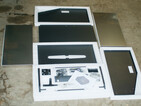 Nachdem der Laser aufgebaut ist, stellt sich als Erstes die Frage nach einer geeigneten Standfläche für das Gerät. Ohne ein Gehäuse, das reflektierte Laserstrahlen blockiert, kam für mich eine metallische Oberfläche nicht infrage. Als erstbeste Lösung aus dem Baumarkt habe ich mich für ein Fichtenbrett in einer entsprechenden Größe von mindestens 57 × 60 cm entschieden. Der Vorteil des Fichtenholzes liegt darin, dass es von dem Laser auch bei längerer Exposition nur oberflächlich angegriffen wird. Mittels der beigelegten Winkel lässt sich der Rahmen des Lasers leicht auf dem Brett fixieren.