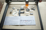 Der Ortur Laser Master 2 Pro kommt sicher verpackt in einer Kiste von 11 × 25 × 66 cm an. Alle Bauteile und Baugruppen sind gut sortiert, einzig einen Kreuzschlitzschraubendreher benötigt man zusätzlich zum beigelegten Werkzeug. Die bebilderte Anleitung ist zudem leicht verständlich, auch wenn die deutsche Übersetzung noch ein wenig Feinschliff vertragen könnte. Mehr als eine Stunde sollte der Aufbau nicht in Anspruch nehmen. Mit im Karton ist außerdem eine Schutzbrille, die anscheinend auch eine recht gute Qualität hat und zumindest für den Anfang ausreichend sein sollte. Außerdem befinden sich ein paar Probestücke aus Holz und Acryl in der Box, mit denen man gleich den Laser ausgiebig testen kann.