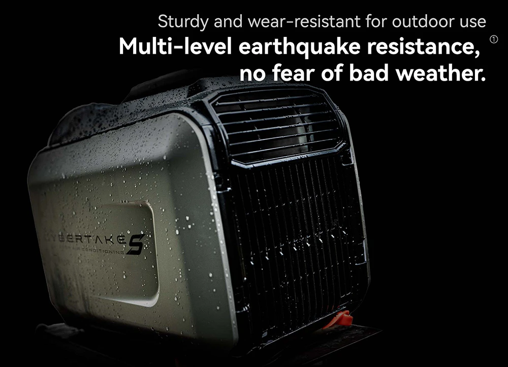 Dank Wasserdichtigkeit und einem robusten Design kann das Cybertake S1 Pro sowohl im Innen- als auch im Außenbereich genutzt werden, also beispielsweise beim Zelten außerhalb des Zeltes aufgestellt werden. Entsprechende Rohre für Zu- und Abluft liegen im Lieferumfang bei.