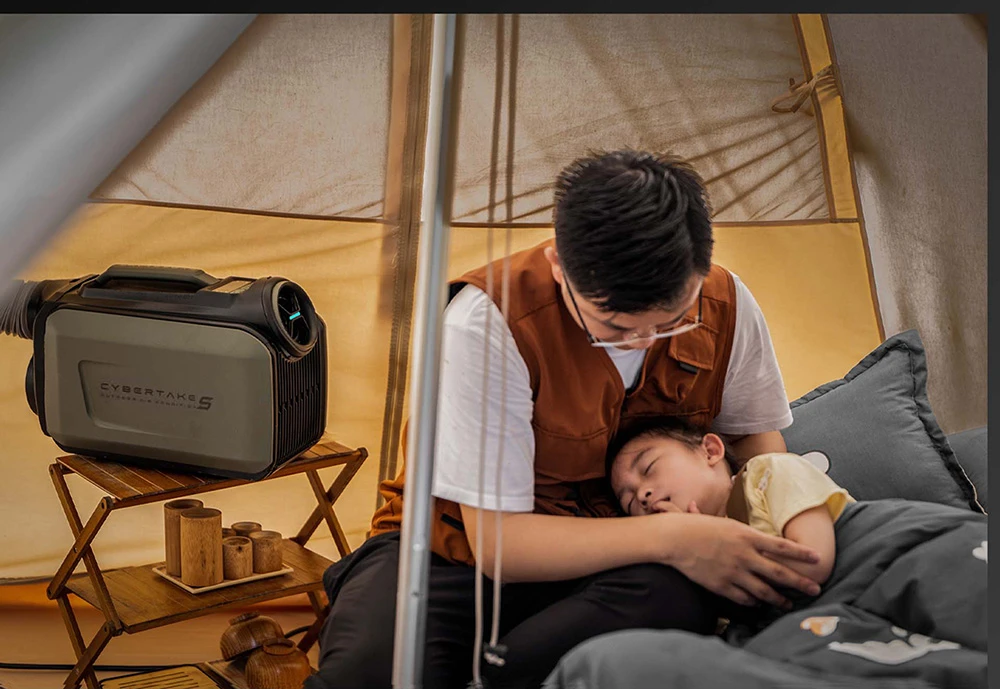 Das Cybertake S1 Pro ist ein tragbares Außenklimagerät. Es kann beispielsweise beim Camping für kühlere Nächte sorgen, aber natürlich auch zuhause zum Einsatz kommen. Das Gerät kann mit 12, 24, 48, 110 sowie 220 V betrieben und somit vielfältig mit Energie versorgt werden.