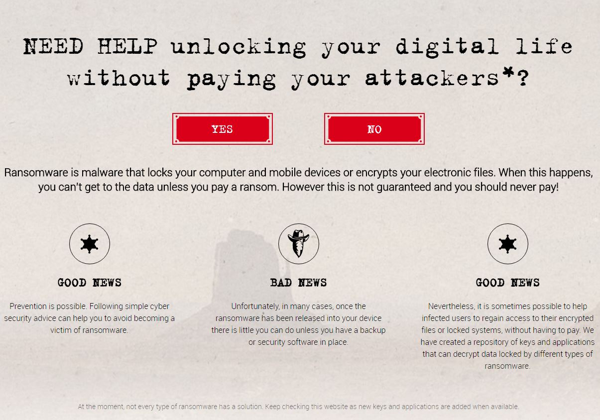 Eine neue Webseite von Europol, der niederländischen Polizei, Intel Security und Kaspersky soll nun eine zentrale Anlaufstelle für Betroffene und Hilfesuchende darstellen. Sie will durch Aufklärung einerseits verhindern, dass neue Infektionen mit Ransomware überhaupt auftreten, beziehungsweise Anwender nach einem Angriff hilflos ohne Backup dastehen, andererseits aber auch Hilfe bei der Entschlüsselung der vermeintlich verlorenen Daten bieten und Schnittstelle zur jeweiligen lokalen Polizeibehörde sein.