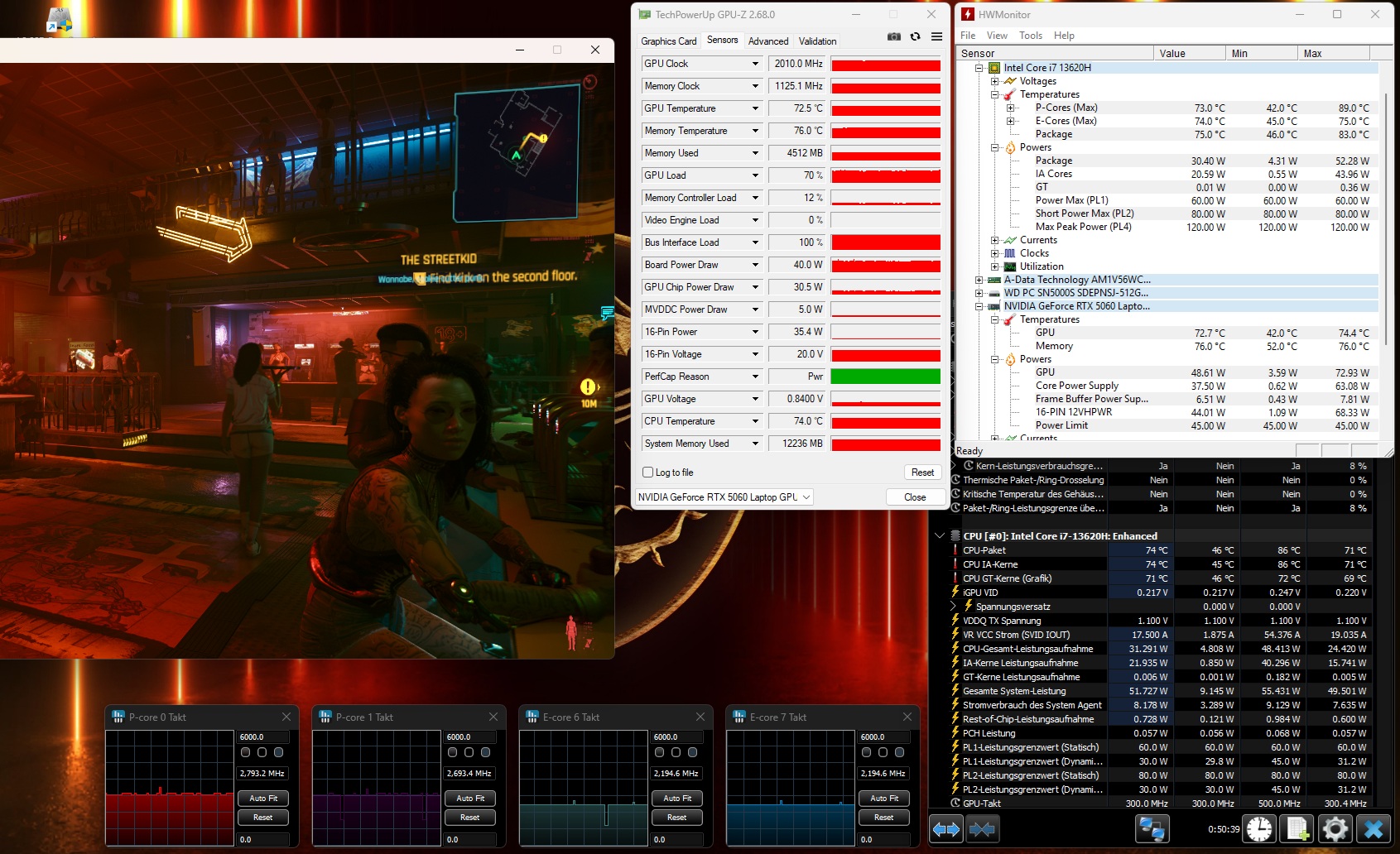 | MSI Cyborg 17 B13WFKG i7-13620H, GeForce RTX 5060 Laptop | Acer Nitro V 16 AI ANV16-42-R860 R5 240, GeForce RTX 5050 Laptop | Alienware 16 Aurora Core 7 240H, GeForce RTX 5060 Laptop | HP Omen 16-ap0091ng R9 8940HX, GeForce RTX 5060 Laptop | Lenovo Legion 7 16IAX10 Ultra 7 255HX, GeForce RTX 5060 Laptop | Gigabyte Gaming A16 GA6H i7-13620H, GeForce RTX 5070 Laptop | Durchschnitt der Klasse Gaming | |