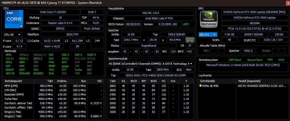 Das getestete MSI Cyborg 17 B13WFKG mit Core i7-13620H und GeForce RTX 5050 Laptop ist ab rund 1.200 Euro bei diversen Online-Shops verfügbar (z. B. Galaxus).