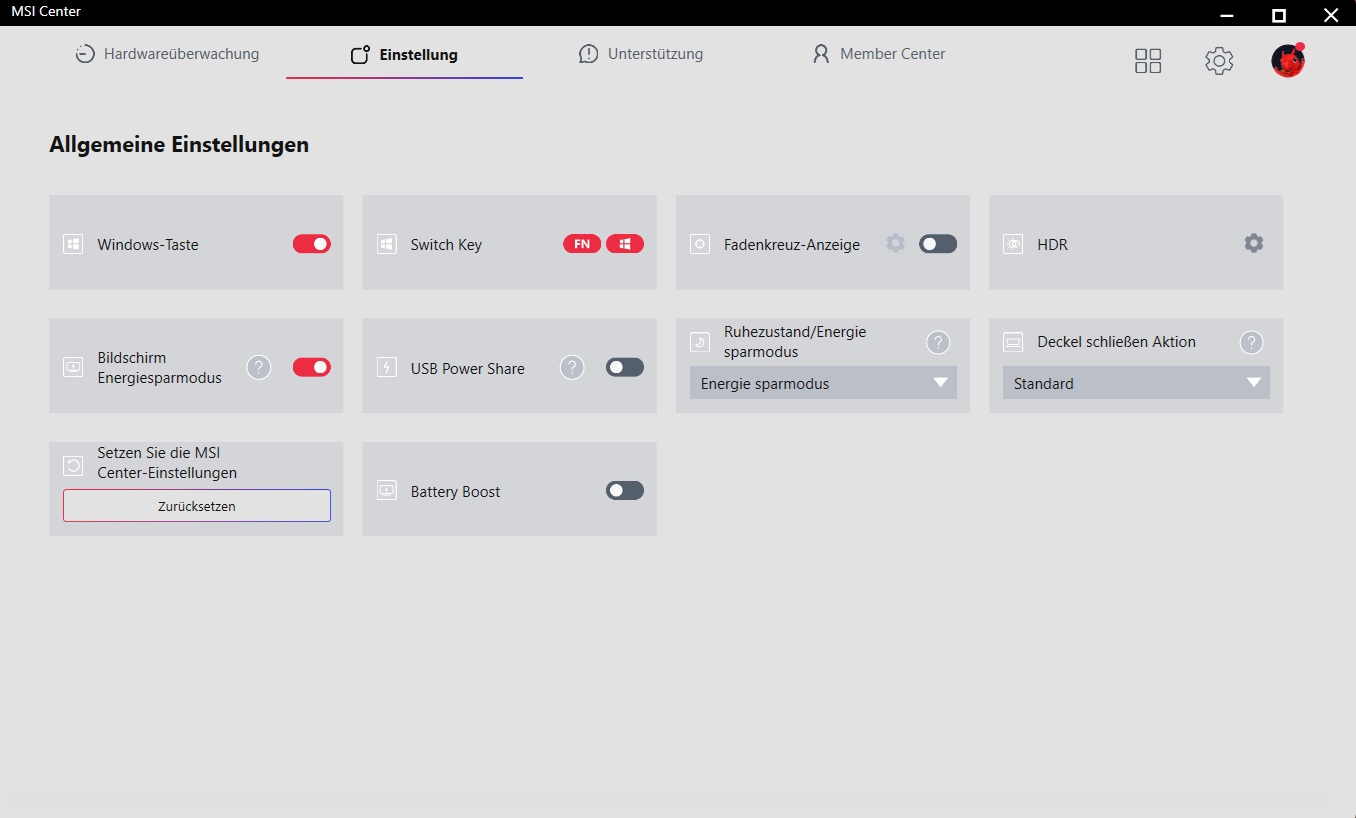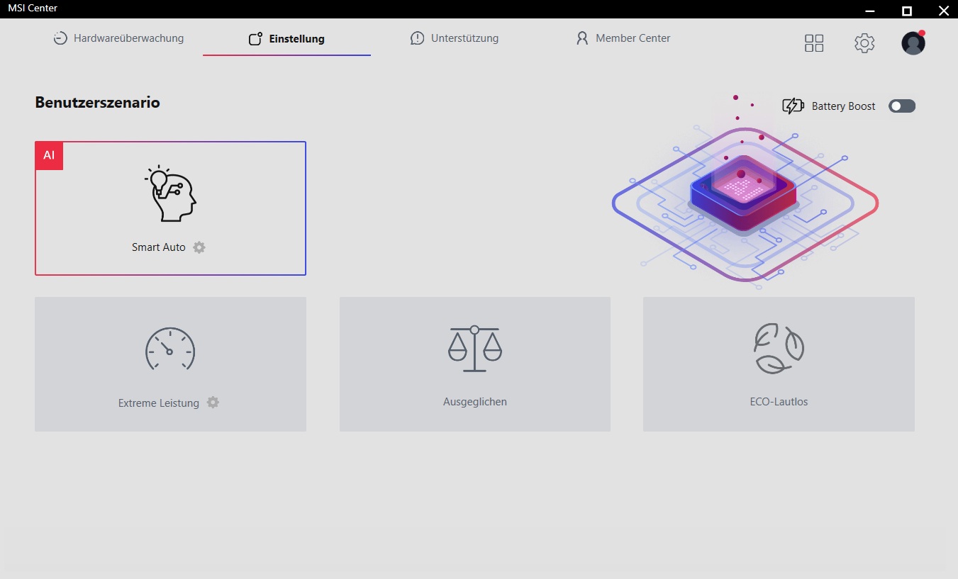 | Mode | Smart Auto | Extreme Leistung | Ausgeglichen | ECO-Lautlos |