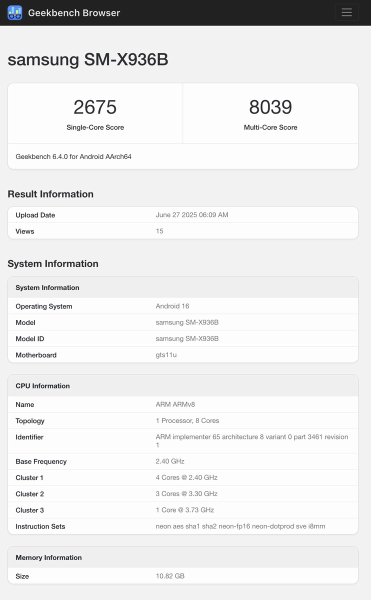 Dennoch ist das Galaxy Tab S11 Ultra nun bei Geekbench aufgetaucht. Zur Erinnerung, das kleinere Galaxy Tab S11 wurde bereits Anfang des Monats auf der Benchmark-Plattform gesichtet und trug dabei die Modellnummer SM-X736B. Wie schon beim Galaxy Tab S10 Plus und Galaxy Tab S10 Ultra (ab 884 Euro im Preisvergleich) könnte das Galaxy Tab S11 Ultra einen Performance-Vorteil gegenüber seinem kompakteren Schwestermodell haben.