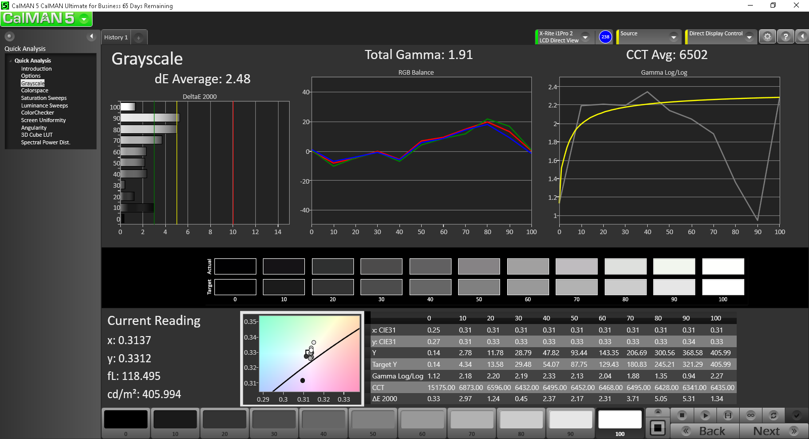 ΔE Greyscale Calman: 2.22 | ∀{0.09-98 Ø5}