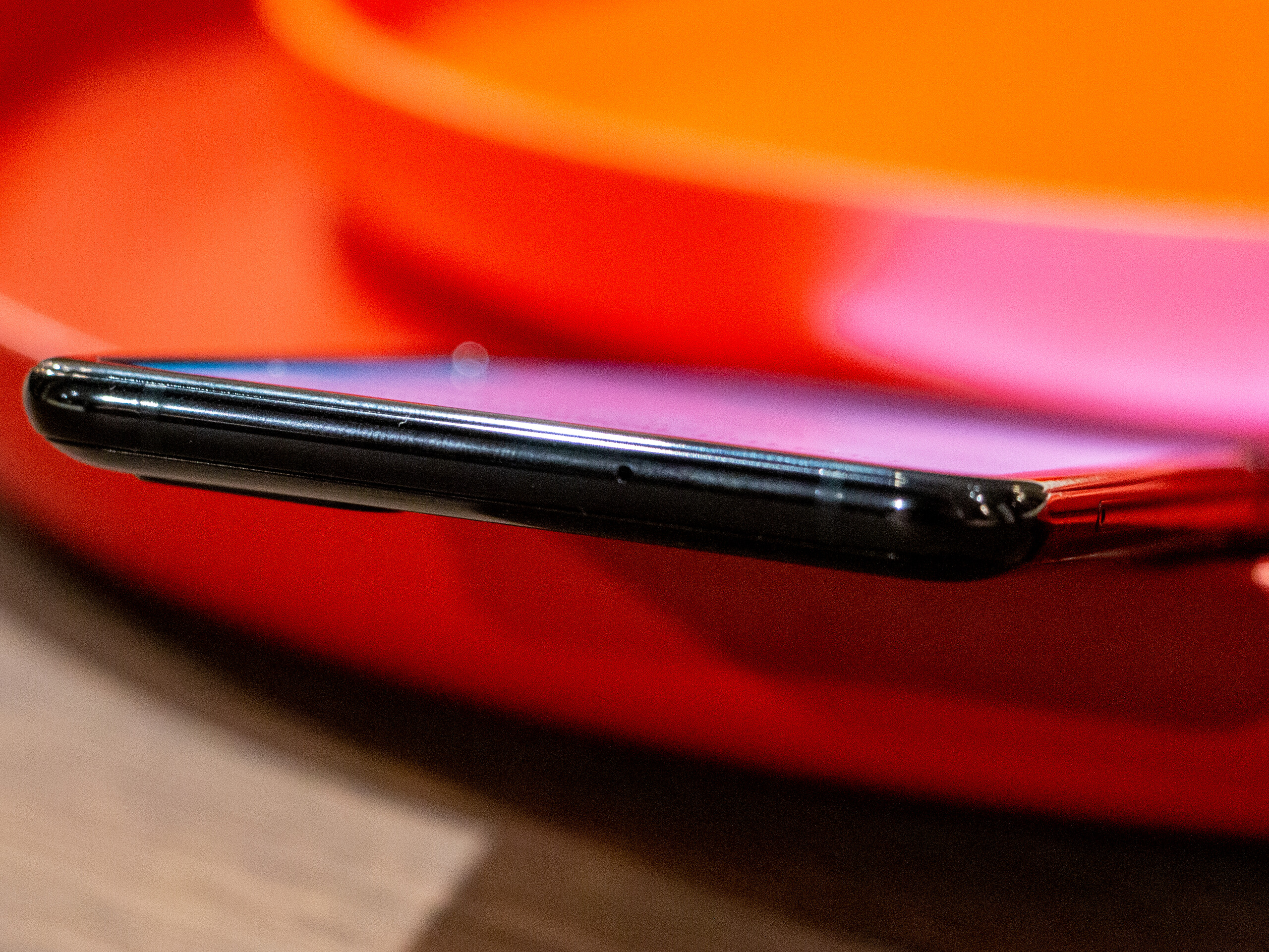 Das Galaxy Z Flip setzt auf reichlich Glas. Auf der Außenseite kommt Corning Gorilla Glas 6 zu Einsatz und die Kameras werden mit Gorilla Glas 3 geschützt. Erstmals legt Samsung auch eine dünne, flexible und nicht näher spezifizierte Glasschicht über das faltbare Display. Die noch beim Galaxy Fold angemahnte Sensibilität der Oberfläche soll damit kein Problem mehr darstellen und tatsächlich ließ sich mit Fingernägeln nichts mehr eindrücken und das Panel wirkt wesentlich stabiler. Leider bleibt die Wellenbildung an der Faltstelle weiterhin nicht aus.