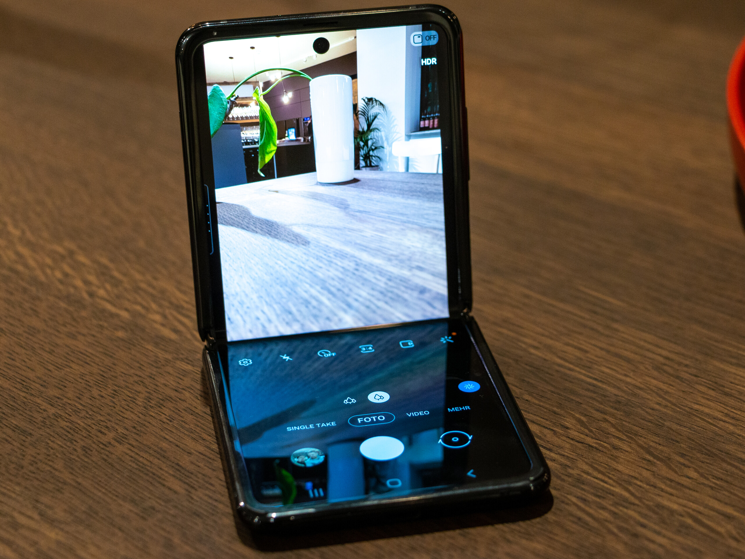 Das Galaxy Z Flip besitzt eine Frontkamera, welche wohl ohne Autofokus auskommen muss. Ebenso müssen beim Kamerasetting auf der Außenseite Abstriche hingenommen werden. Die Dual-Kamera besitzt zwar den schnell Dual-Pixel-Autofokus, welchen wir auch aus den Galaxy-S-Smartphones kennen, jedoch nicht die variable Blende.