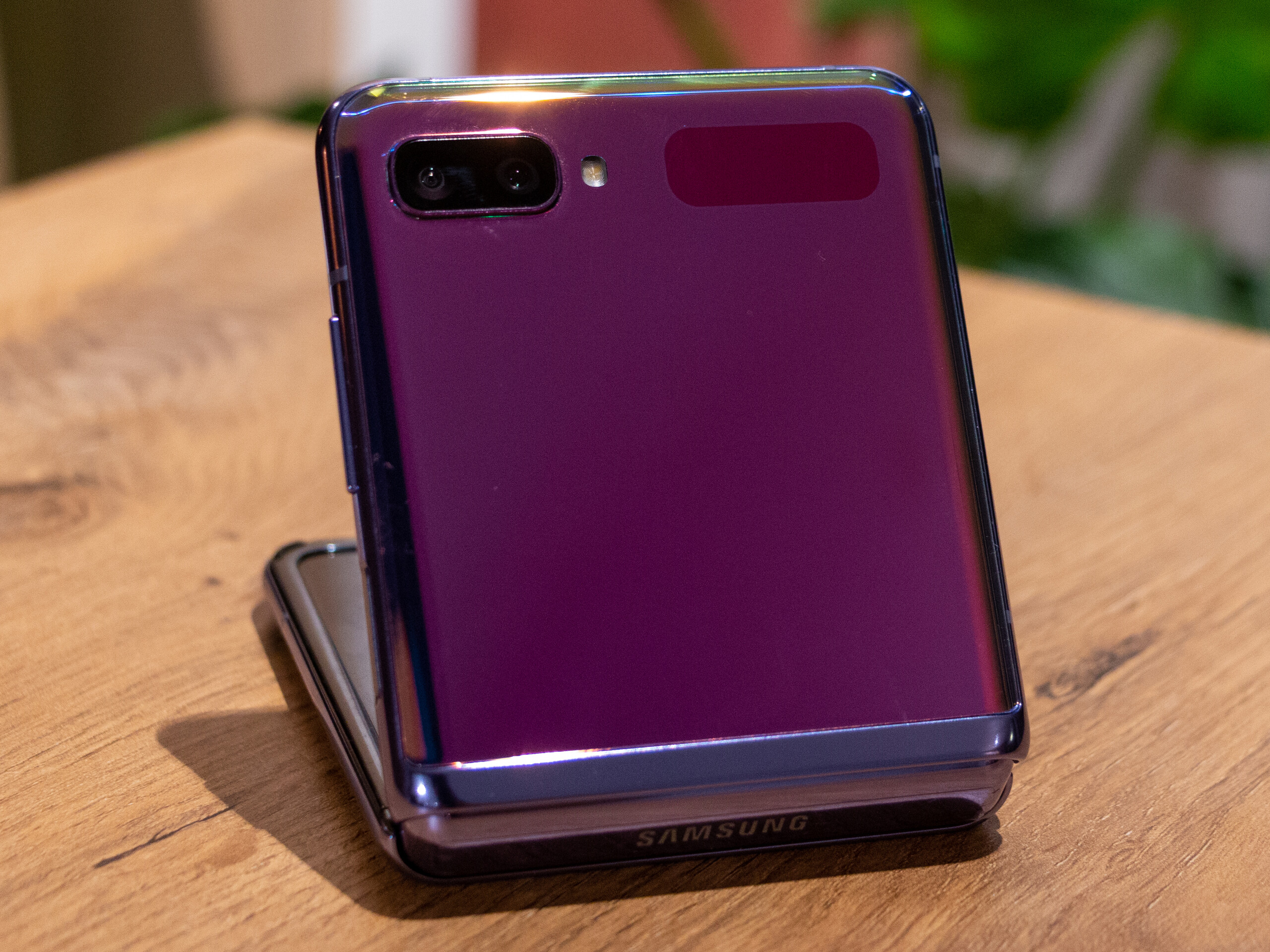 Die Verarbeitung als solche hat auf uns einen sehr guten Eindruck gemacht, nur der dicke Kunststoffrand um das Display herum wirkt etwa unelegant. Neben Mirror Black wird das Galaxy Z Flip auch in Mirror Purple zu haben sein.