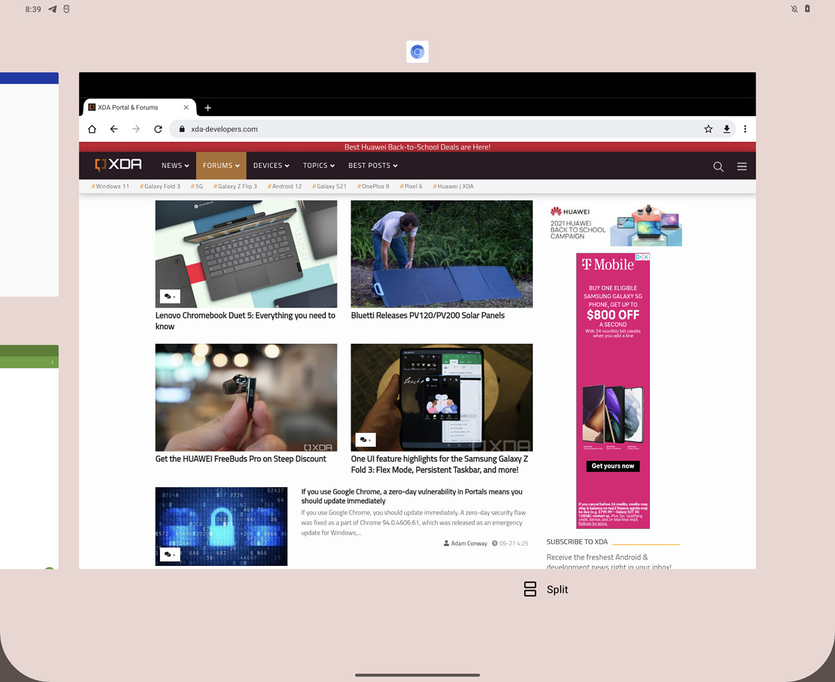 Ganz so raffiniert wie bei Samsungs aktueller One UI-Oberfläche für Foldables ist die aktuelle Android 12.1 Version noch nicht, so kann man etwa App-Paare noch nicht in der Taskbar abspeichern, auch drei Apps gleichzeitig nebeneinander ist offenbar (noch) nicht vorgesehen, das kann aber alles noch mit künftigen Versionen des Google OS kommen. Die Ansicht der zuletzt genutzten Apps zeigt die letzte App größer und enthält bereits einen Split-View-Button (siehe Bilder unten), Benachrichtigungen und Quick-Settings können auf einem entsprechend großen Display nun auch nebeneinander angezeigt werden (siehe Bild oben).
