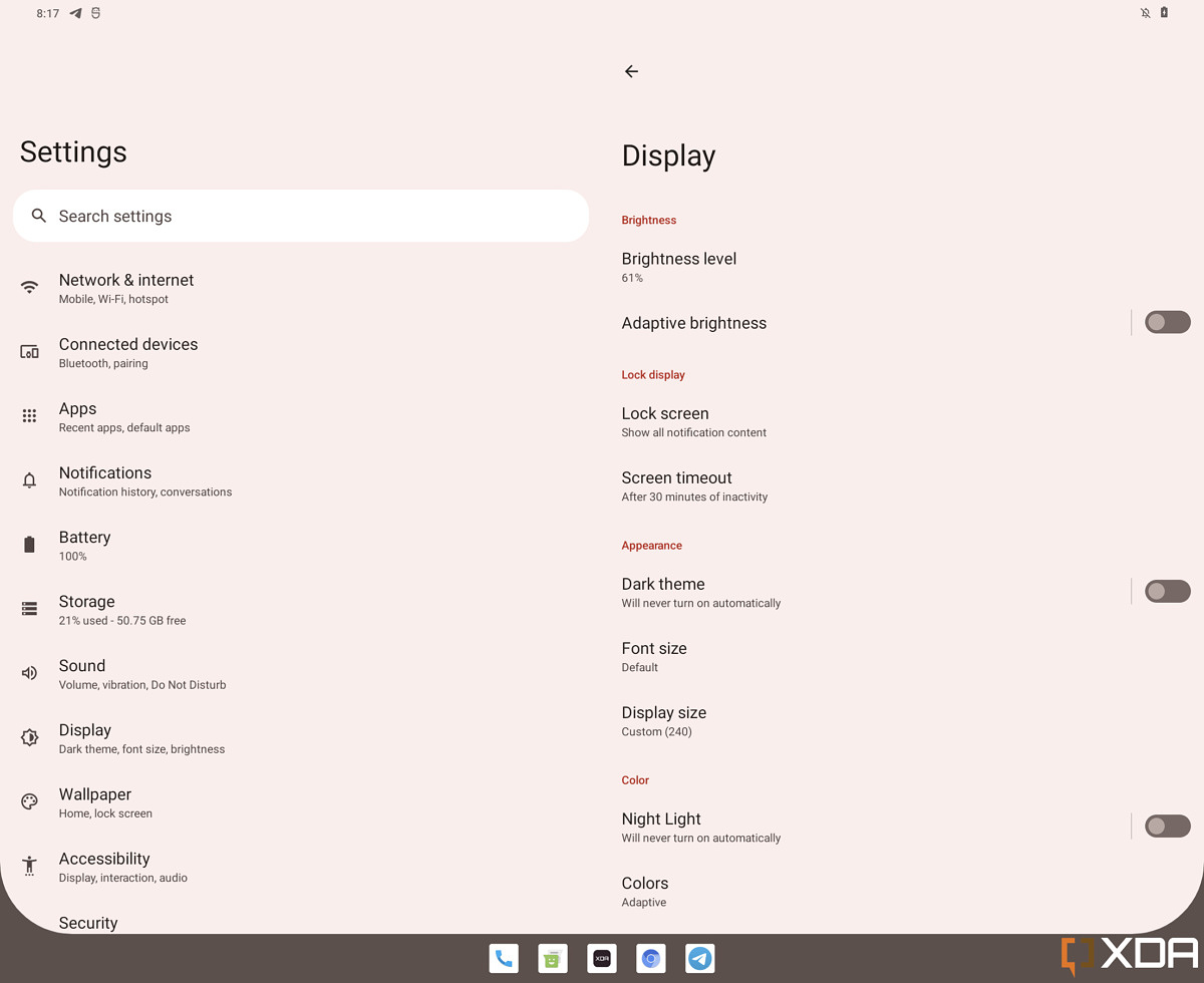 Viele Details und GUI-Änderungen sind aktuell noch nicht final, dennoch erlaubt das Hands-On mt Android 12.1 einen frühen Einblick in die Foldable-freundliche Entwicklung von Android, die - wie es aussieht - einige Features erben wird, die es aktuell schon bei One UI 3.1.1 am Galaxy Z Fold3 gibt. Dazu zählt etwa eine Art von Dock oder Taskbar, wie sie bereits zuvor mal auf einem Bild zu sehen war und wie sie auch hier wieder in Screenshots auftaucht. Auch die zweiseitigen Einstellungsoptionen mit Detailoptionen an der rechten Seite oder die Dual-View-App-Ansicht mit zwei Apps nebeneinander kennen Besitzer des Samsung-Foldables.