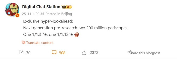 Noch weiter in die Zukunft blickt aktuell der chinesische Leaker Digital Chat Station, der in einem aktuellen Weibo-Post von einem potentiellen Oppo Find X10 Ultra Prototypen berichtet, der vermutlich erst 2027 in die Massenfertigung gehen wird, wenn das Projekt vorher nicht eingestampft wird. Demnach experimentiert Oppo gerade mit einem Dual-200-Megapixel-Periskop-Telefoto-System, das aus einem 1/1.3 Zoll Sensor und einem 1/1.12 Zoll Sensor besteht. Die Sensor-Größen deuten neben einem klassischen Samsung-Sensor wie dem ISOCELL HP2 auf den neuen Sony 200 Megapixel Sensor der Anfang 2026 vermutlich als LYT-910 starten wird und auch im Vivo X300 Ultra erwartet wird - offenbar auch bei uns in Europa.