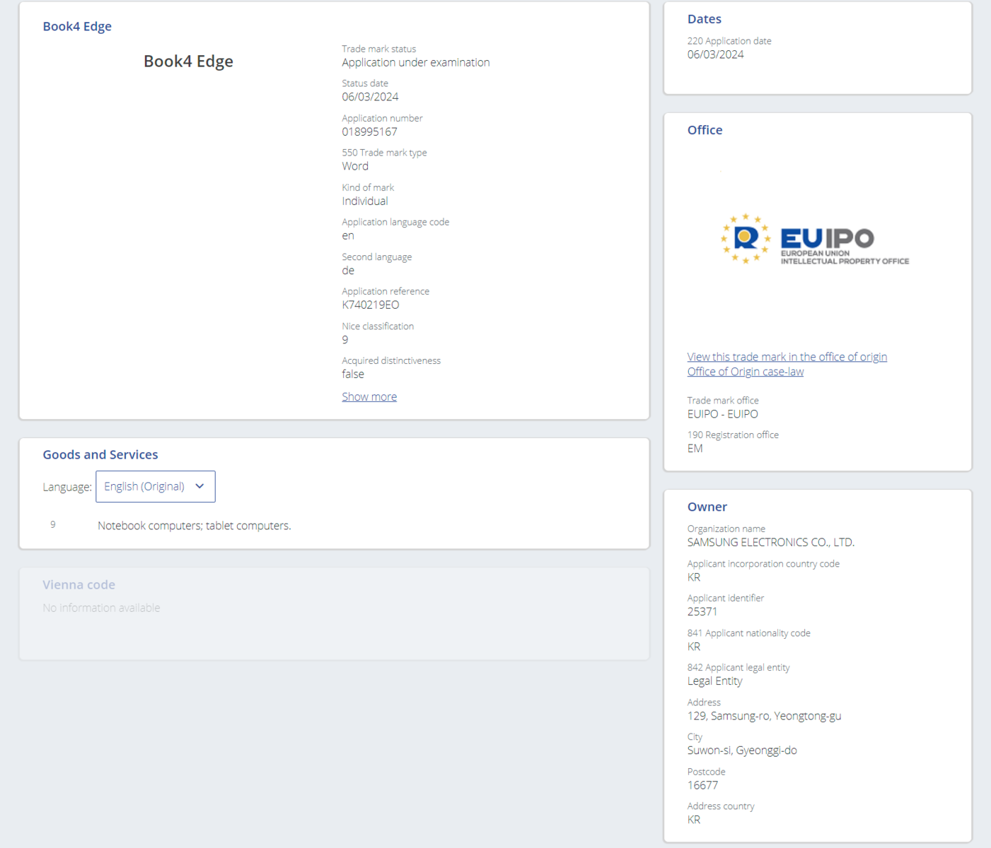 Damals kam das 23 Watt TDP-Design auf 2.777/14.056 Punkte, mit 80 Watt TDP wurden 2.966/15.239 Punkte erreicht. Zum Vergleich: Das brandneue Apple MacBook Air auf Apple M3 Basis kam in unserem Geekbench-Test auf 3.026/12.034 Punkte, hat also noch geringfügige Vorteile im Single-Core-Test, muss sich allerdings im Multi-Core-Test dem 12-Oryon-Core-Chip von Qualcomm geschlagen geben. Knapp am Samsung Galaxy Book4 Edge vorbei galoppiert allerdings der Apple M3 Pro im MacBook Pro 14 2023, mit 14.412 Punkten Multi-Core-Ergebnis. Noch performanter sind zudem die aktuellen x86-Champs von Intel und AMD, allerdings soll der ARM-Chip natürlich deutlich effizienter arbeiten. Samsungs Galaxy Book4 Edge Trademark wurde übrigens auch bereits bei der EUIPO entdeckt, auch die neuen Microsoft Surface-Geräte dürften im Sommer in einer Version mit Snapdragon X Elite starten.