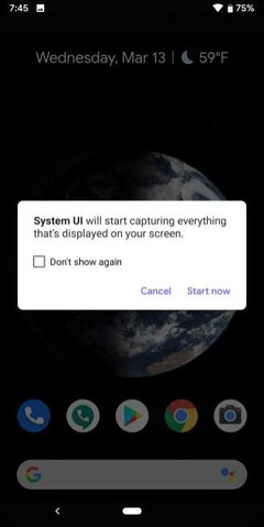 Auch ein nativ vorhandener Screen-Recorder muss manuell in den Entwickler-Optionen aktiviert werden, eine Aufnahme kann dann über das lange Drücken des Power-Buttons und folgend das lange Drücken des Screenshot-Buttons gestartet werden. Optional kann auch das Mikrophon während der Aufnahme aktiv sein.