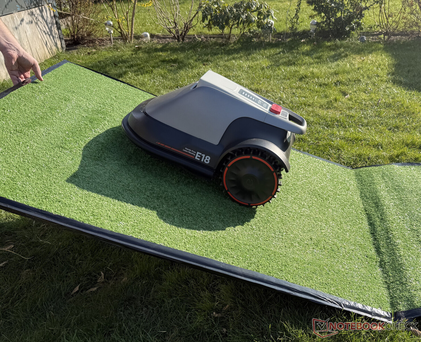Bei der maximalen Steigung bleibt der Mähroboter von Anker etwas hinter einigen Wettbewerbern zurück. Der Hersteller gibt maximal 40 Prozent (18 Grad) an. Die hat der Eufy E15 / E18 im Test auf unserer Kunstrasen-Rampe auch bestätigt. Mehr war aber nicht möglich. Diese "Geländegängigkeit" sollte für die allermeisten Gärten langen. Wer anspruchsvolleres Gelände hat, sollte sich aber nach der Alternativen umschauen.