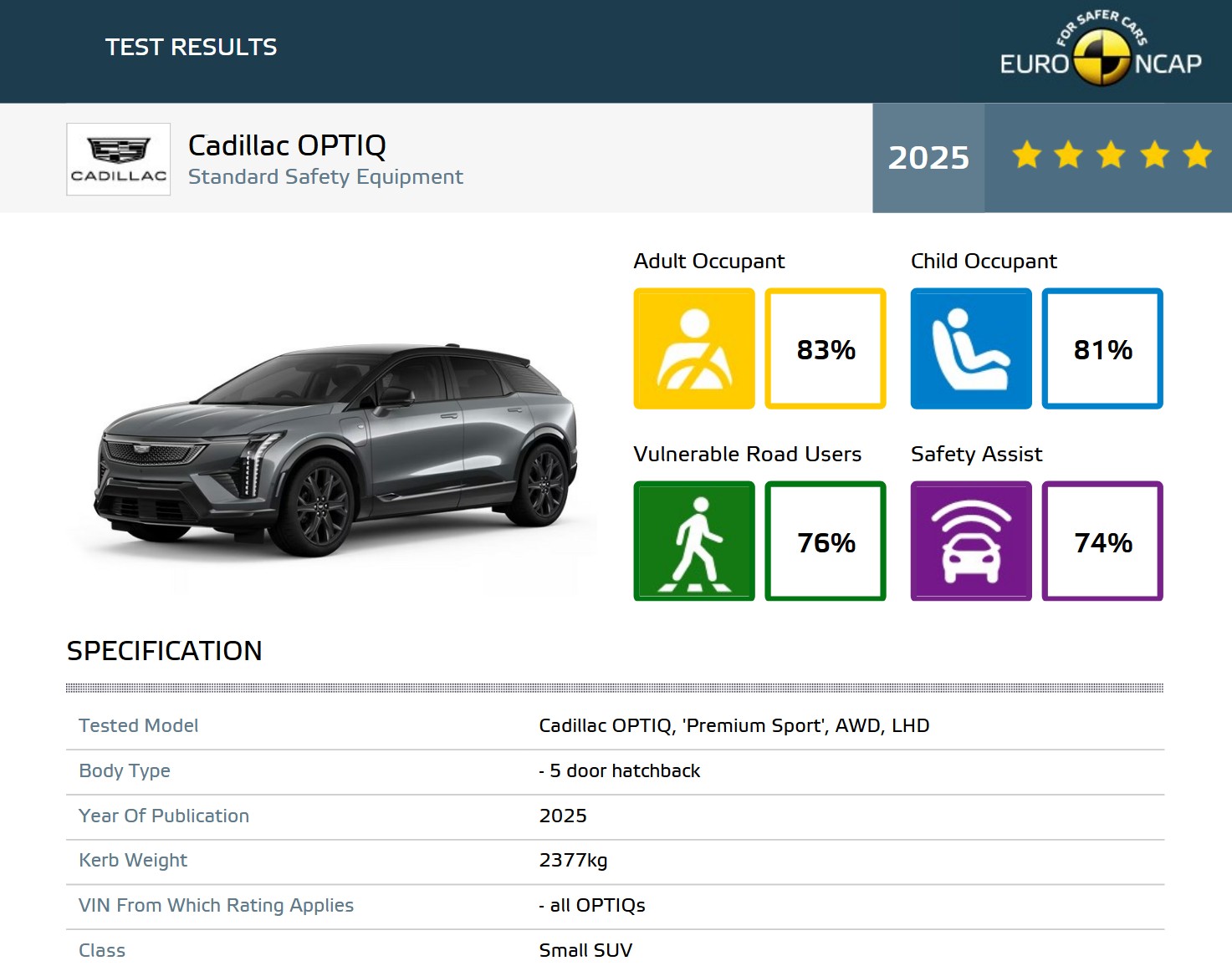 Anders als viele US-Hersteller in der Vergangenheit überzeugte der neue Cadillac Optiq in allen Bereichen und erhielt die Höchstwertung von fünf Sternen. Damit positioniert sich das Fahrzeug erfolgreich im Wettbewerb mit deutschen Premiummarken wie Audi, BMW und Mercedes-Benz.