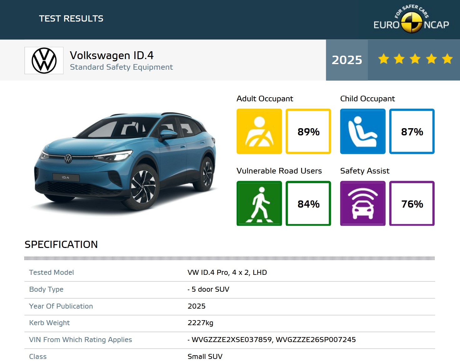 Tolles Ergebnis für VW ID.4 mit 5 Sternen im Re-Test - T-Cross fällt zurück