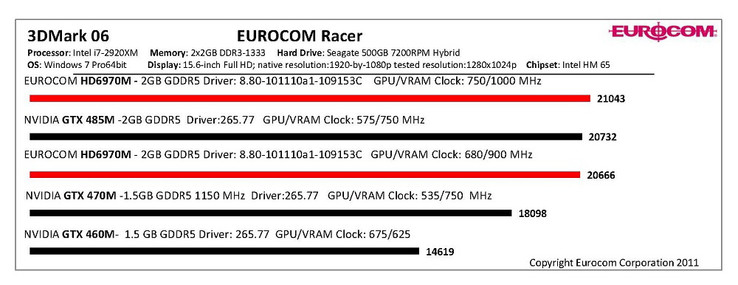 Eurocom hat in seiner Mitteilung auch die Benchmarks für die getesteten Grafikkarten veröffentlicht: