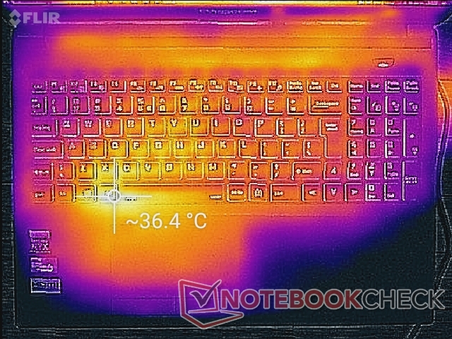 (±) Die Handballen und der Touchpad-Bereich können sehr heiß werden mit maximal 37.2 °C.