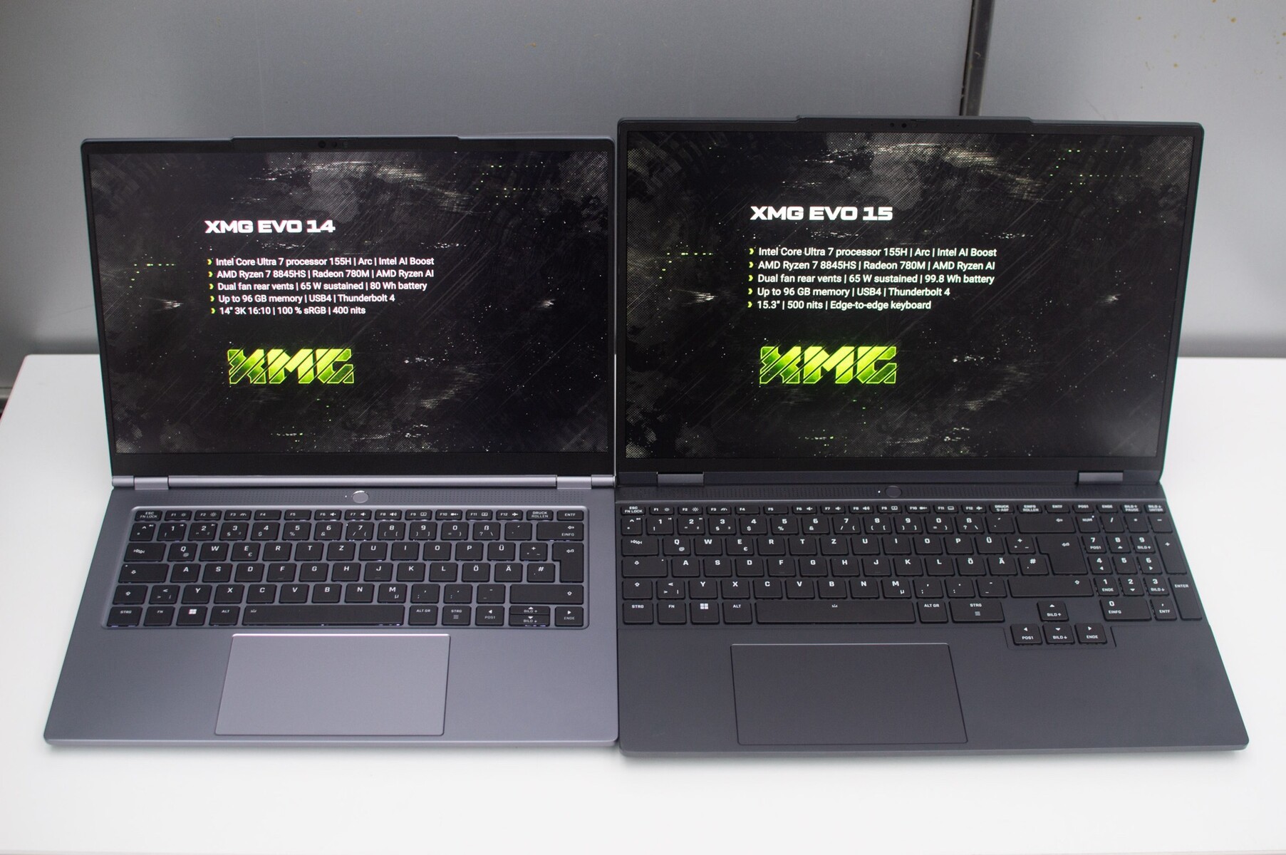 Die XMG Evo-Serie startet im Juli in den Verkauf. Das XMG Evo 14 mit AMD Ryzen, 16 GB RAM und 500 GB SSD kostet 949 Euro, die Variante mit Core Ultra wird für 1.099 Euro angeboten. Das XMG Evo 15 mit derselben Speicher-Konfiguration kostet mit AMD Ryzen-Prozessor 1.049 Euro, oder aber 1.199 Euro mit Intel-CPU.