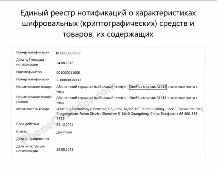 Viel bekannt ist vom OnePlus 6T noch nicht, einzig die Modellnummer A6013 ist gesichert, die tauchte nämlich kürzlich in der Datenbank der Eurasian Economic Commission, kurz EEC auf (siehe unten), was bedeutet, dass sich OnePlus bereits auf den Launch im Herbst vorbereitet. Wir können erwarten, dass sich im Vergleich zum OnePlus 6 nicht allzu viel ändern wird, beispielsweise am eingesetzten SoC, der wohl ein weiteres Mal in Form des Snapdragon 845 von Qualcomm gestellt wird.