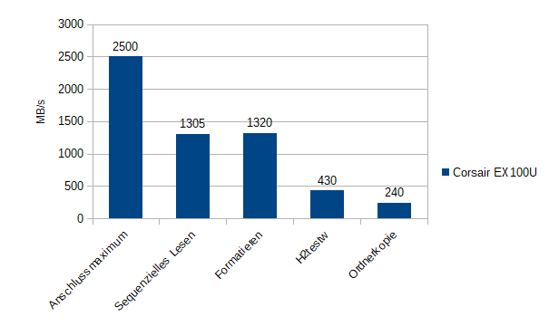 Schreiben, Kopieren und Zugreifen gelingt mit der Corsair EX100U angenehm schnell. Dazu ist sie sehr kompakt gebaut, aber auch teuer.