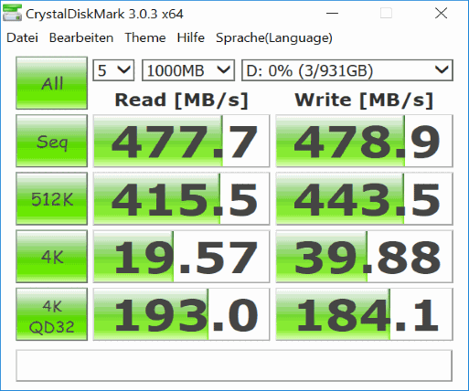 Als synthetische Benchmarks nutzen wir CrystalDiskMark 3.0.3 (64 Bit, 1 GByte Testgröße) als auch AS SSD.