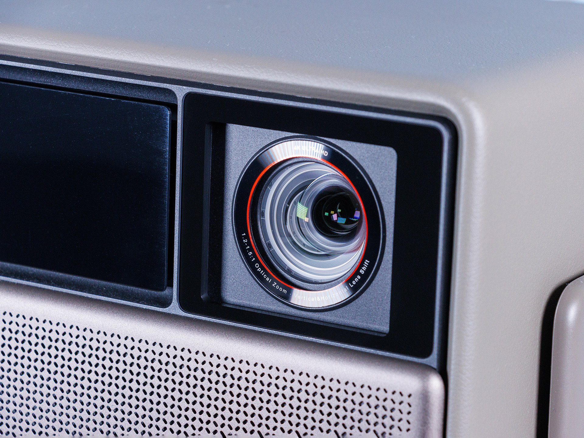 Wer den Beamer von der Seite aufstellt, kann sich auf die Lens-Shift-Funktion verlassen. Die automatische Ausrichtung des Bildes funktioniert sehr gut und macht die Aufstellung zum Kinderspiel. Dabei können jedoch auch sogenannte Ghost-Frames entstehen. Diese halten sich beim Horizon 20 Max zwar in Grenzen, sind aber dennoch sichtbar. Da der direkte Blick in die Laser alles andere als gesund ist, besitzt der Beamer einen Augenschutz, der erkennt, wenn jemand in die Projektionsfläche tritt und schaltet diese dann ab. Die Funktion kann auch deaktiviert werden.