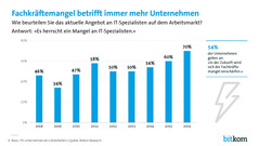 Bei der repräsentativen Umfrage wurden mehr als 1.500 Geschäftsführer und Personalverantwortliche von Unternehmen aller Branchen befragt. 70 Prozent der befragten ITK-Unternehmen geben an, dass aktuell ein Mangel an IT-Spezialisten herrscht. Vor einem Jahr waren es erst 60 Prozent.