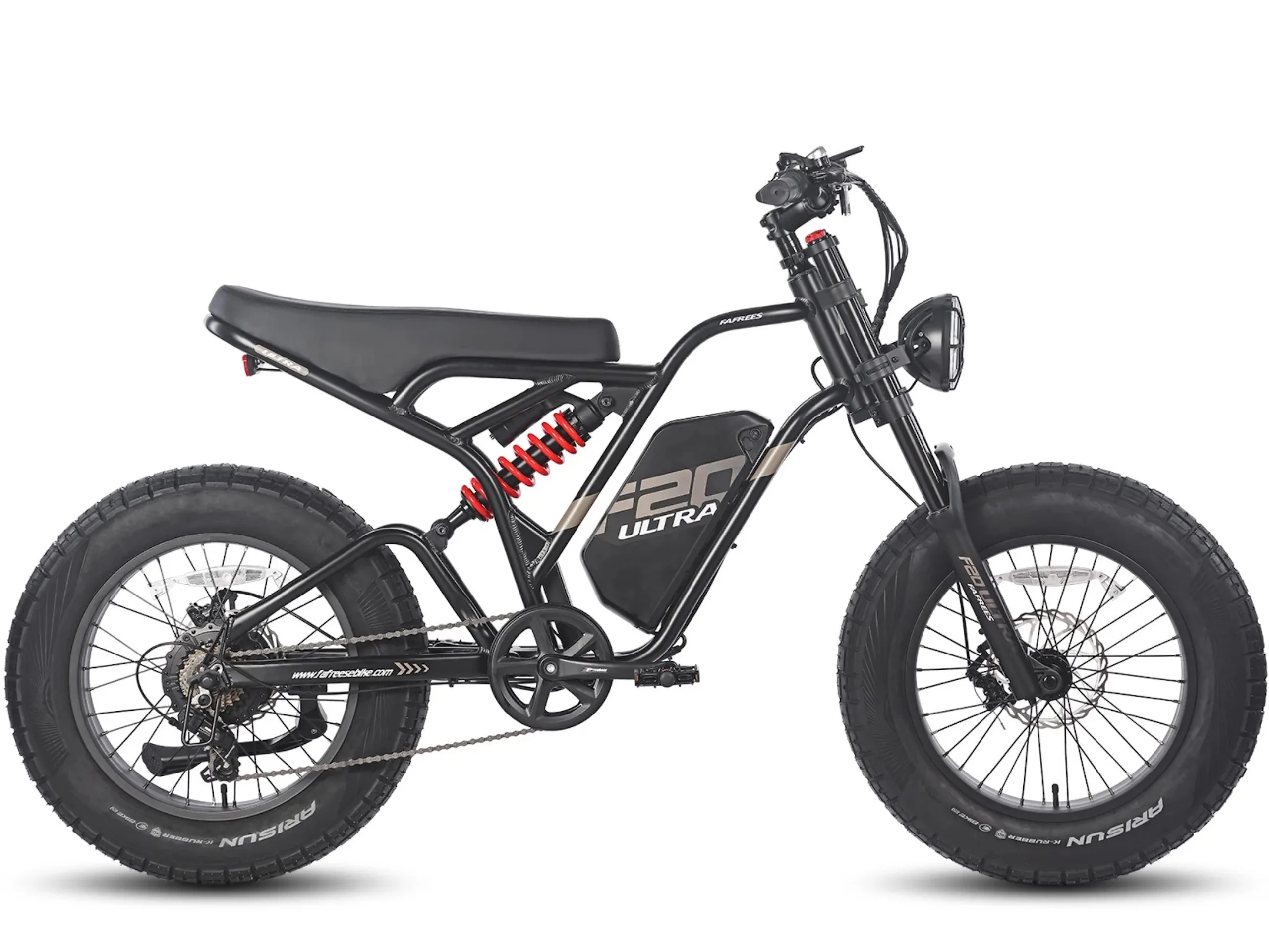 Der Hersteller Fafrees bietet mit dem F20 Ultra ein neues E-Bike an. Optisch ist das F20 Ultra quasi kaum noch als E-Bike zu erkennen, so sieht das Fahrrad vielmehr aus wie ein für das Gelände gut geeignetes Motorrad. So verzichtet der Hersteller auf einen klassischen Sattel, die Sitzbank verspricht einen hohen Komfort. Nicht nur im Gelände dürfte die Federung auf den Fahrkomfort einzahlen, so kommen sowohl ein Dämpfer als auch eine Federgabel zum Einsatz. Die Federgabel bietet dabei einen Federweg von 100 Millimetern.