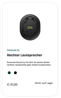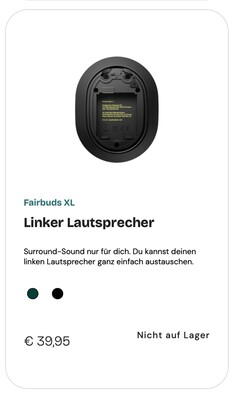 Im Onlineshop von Fairphone sind mittlerweile zahlreiche Ersatzteile für die neuen Over-Ear-Kopfhörer erhältlich. Demnach kostet es 101,90 Euro, beide Treiber der Fairbuds XL auf die neuen Lautsprecher aufzurüsten. Der rechte Lautsprecher ist etwas teurer, weil dieses Modul auch einen Teil der Elektronik beherbergt. Ein Ersatz-Akku kostet nur 19,95 Euro, Ohrpolster werden für 14,95 Euro angeboten, und auch Ersatzteile wie ein neuer Kopfbügel, ein neues Kabel oder ein Stoffbezug für das Kopfband werden jeweils für 15 bis 20 Euro angeboten.