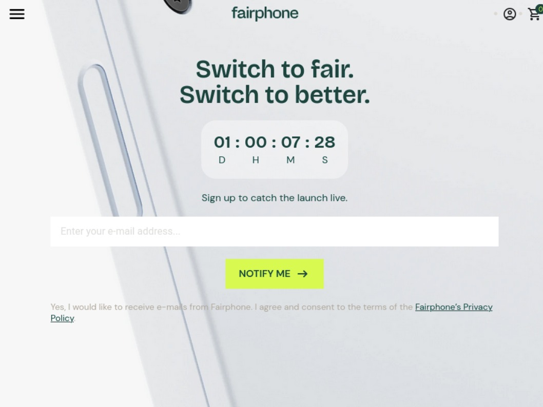 Nun ist auf der Hersteller-Website Fairphone.com ein Countdown aufgetaucht, der am 25.06.2025 um 11:00 Uhr mitteleuropäischer Zeit ablaufen wird. Im Hintergrund ist ein Teil der Rückseite eines weißen Smartphones mit einer Schraube zu sehen. Wer die bisherigen Leaks verfolgt hat, erkennt darauf die weiße Ausgabe des Fairphone 6 aus den zuvor durchgesickerten Bildern dieses Smartphones.