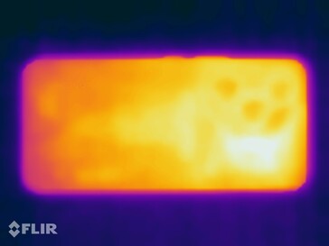 (±) Auf der Unterseite messen wir eine maximalen Wert von 44.1 °C (im Vergleich zum Durchschnitt von 34 °C).