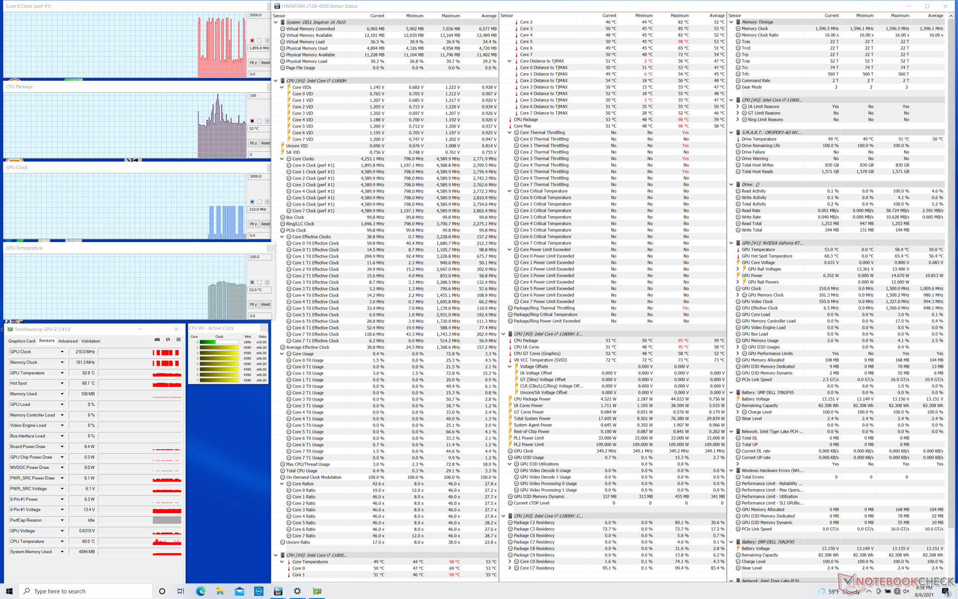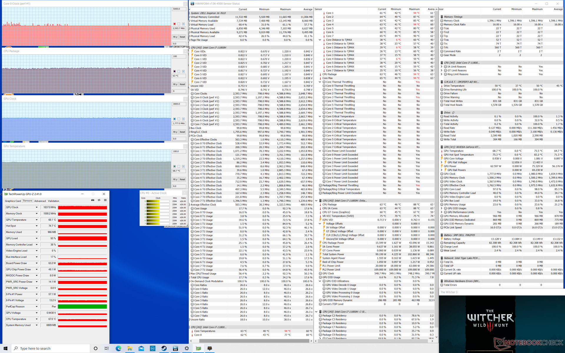 Beim Spielen von The Witcher 3 zwecks der Simulation einer praktischen Gaming-Last stabilisieren sich CPU und GPU bei 63 bzw. 69 °C, während das dickere, lautere MSI GF65 mit der älteren GTX 1660 Ti hier 61 °C bzw. 72 °C erreicht. Die Leistungsaufnahme unserer GPU (board power draw) stabilisiert sich außerdem bei 49 statt dem theoretischen Maximum von 65 W. Nur beim Ausführen von FurMark liegt sie bei über 60 W.