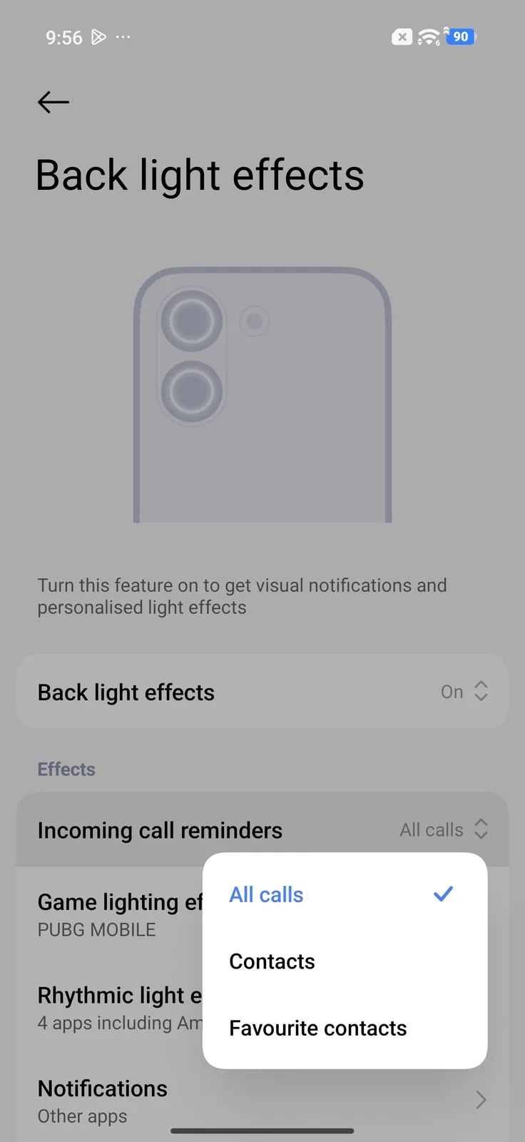 Im Einstellungsmenü stehen zahlreiche Optionen bereit, um die Lichtanimationen bestimmten Apps oder Kontakten zuzuweisen.