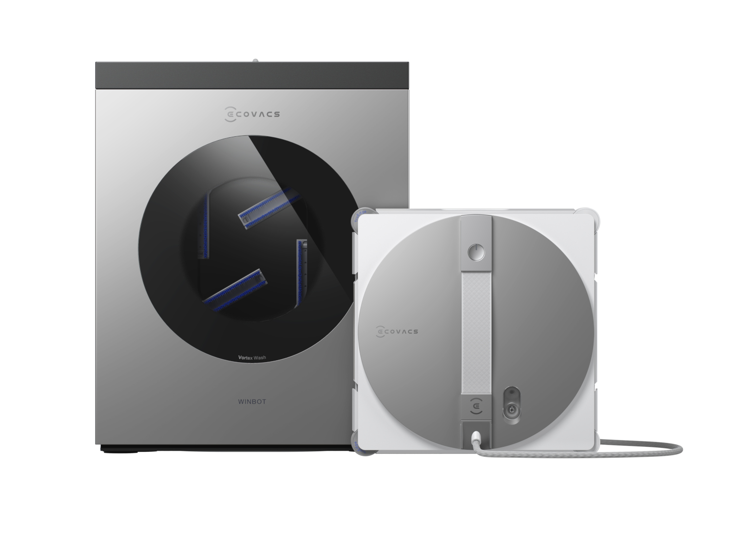 Die neue Generation von Ecovacs Fensterputzroboter kommt mit einer eigenen Waschmaschine. Ecovacs nennt dies Vortex Wash. Dahinter verbirgt sich eine Lösung für die automatische Reinigung der verschmutzten Wischpads, die der Hersteller in die bereits aus der vorherigen Generation bekannten und nun 10 kg wiegenden Basisstation integriert hat.