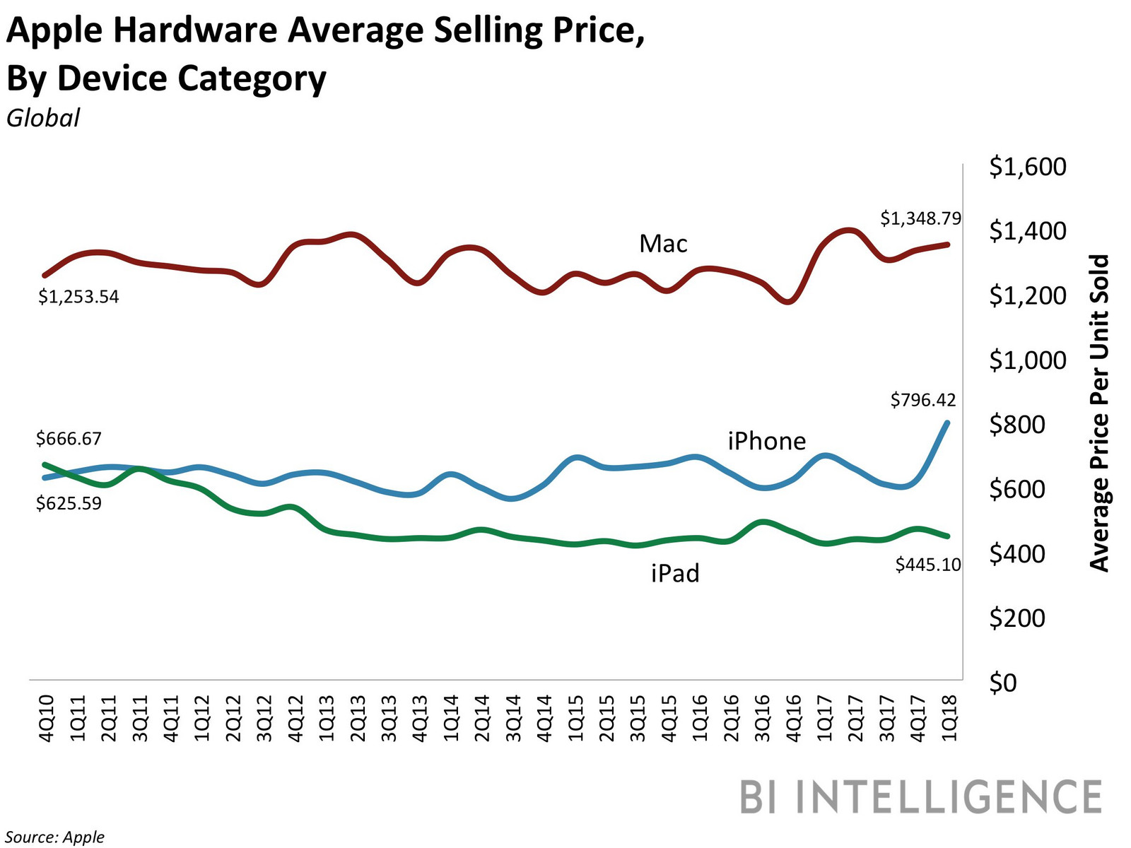 Die Theorie hinter diesem 3-Stufen-Plan, der auch durch die obige Grafik visualisiert wurde, klingt durchaus überzeugend, das bedeutet allerdings nicht, dass es wirklich so kommen muss. Andere Analysen aus den vergangenen Monaten deuteten auf gleichbleibende oder sogar geringere Preise für die OLED-iPhones des Jahres 2018, insbesondere angesichts der sinkenden Verkaufszahlen des iPhone X. Dennoch: Die Statistik zeigt, dass Apple-Fans in den letzten Quartalen durchschnittlich 200 US-Dollar mehr für ihre Lieblingsphones ausgegeben haben als früher. Ein Trend, der durchaus anhalten könnte.