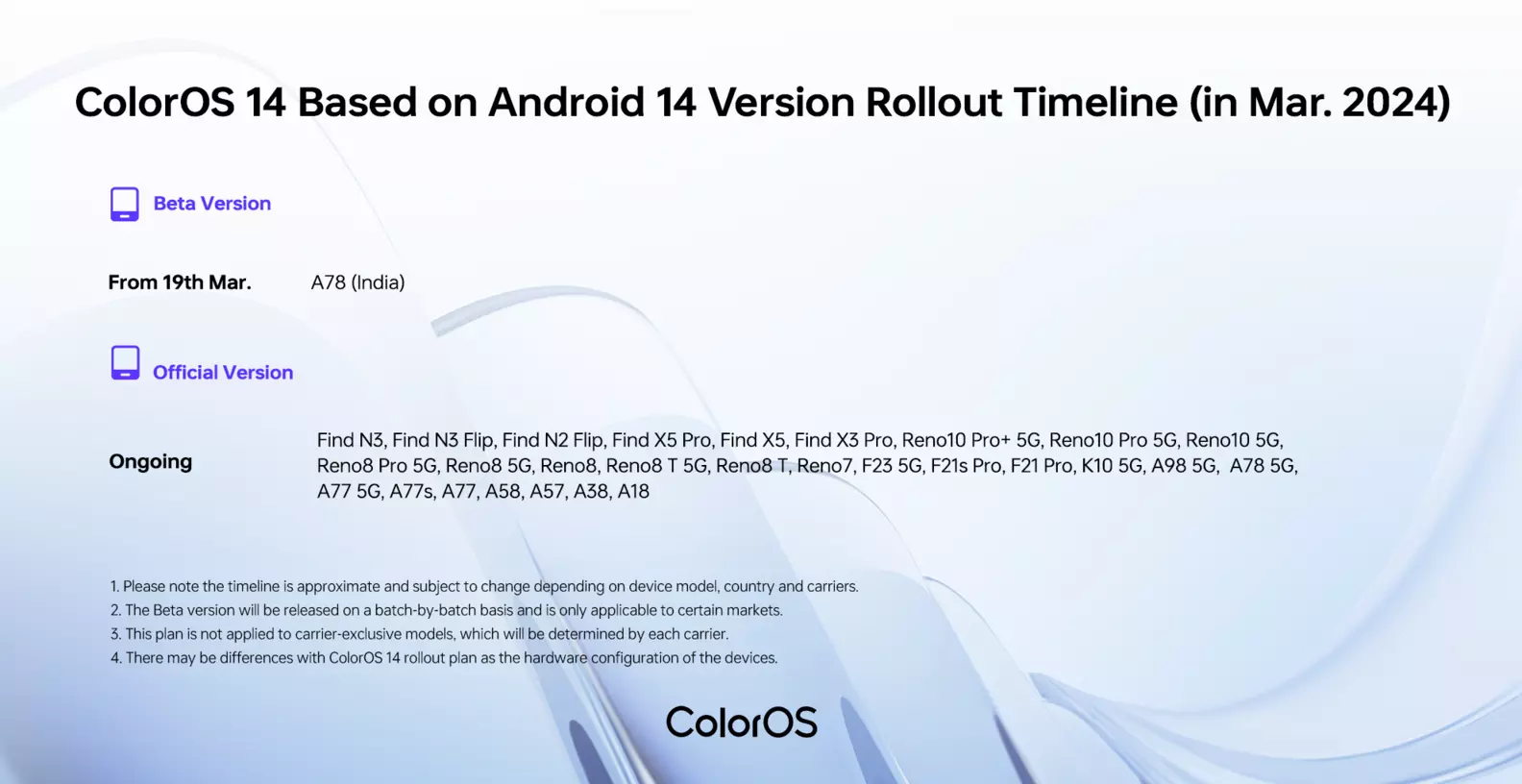 Mit dabei sind unter anderem die Flaggschiff-Modelle Oppo Find X5, Find X5 Pro und Find X3 Pro sowie diverse Foldables wie das Oppo Find N3, aber auch zahlreiche günstigere Modelle aus der Reno-, A-, K- und F-Serie.