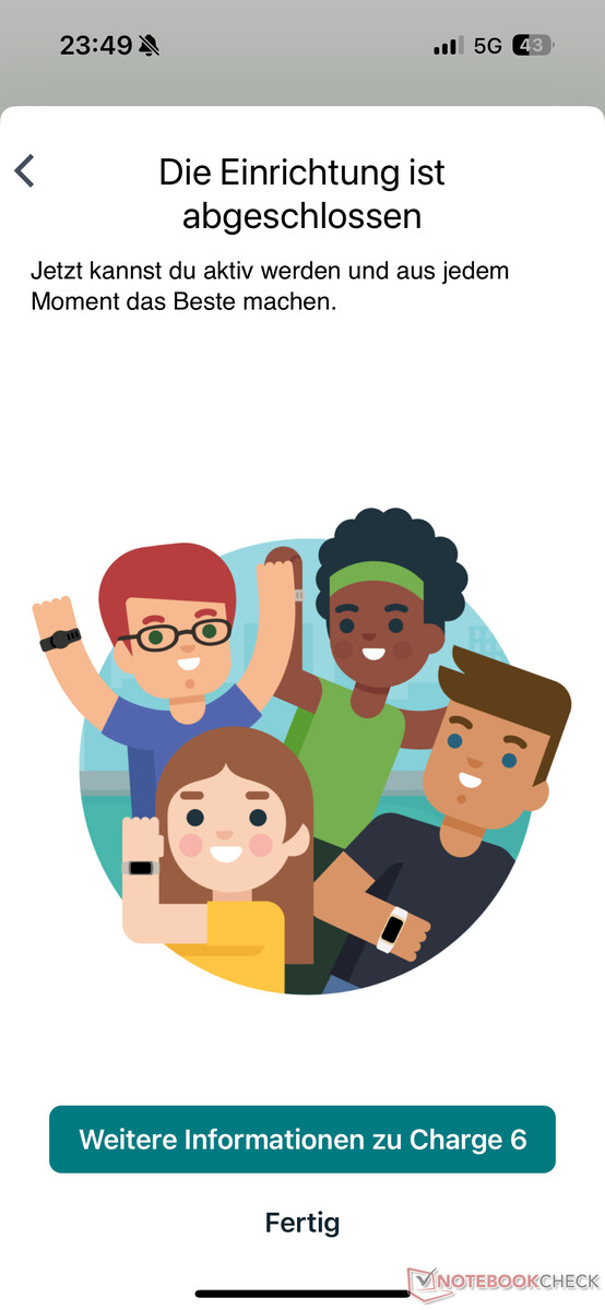 Für die Einrichtung ist die Fitbit App erforderlich, die es kostenlos für Android und iOS gibt. Das Vorgehen ist handelsüblich. In der App muss ein neues Gerät hinzugefügt und dann der Eintrag für das Modell "Charge 6" ausgewählt werden. Anschließend führen Anweisungen auf dem Bildschirm durch die wenigen und im Test schnell und problemlos erledigten Schritte.