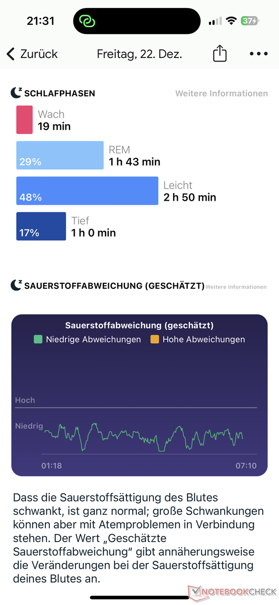 - Schlafindex mit Details zu Schlafphasen und -qualität