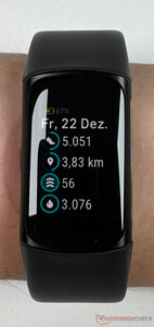 Das Display des Fitbit Charge 6 misst - wie beim Vorgänger - 1,04 Zoll. Google verbaut erneut ein AMOLED-Panel, über dessen genaue Auflösung keine Daten vorliegen. Es liefert eine ausreichend detaillierte Darstellung und lässt sich bei direkter Sonneneinstrahlung noch einigermaßen ablesen, könnte aber insgesamt gerne heller ausfallen.