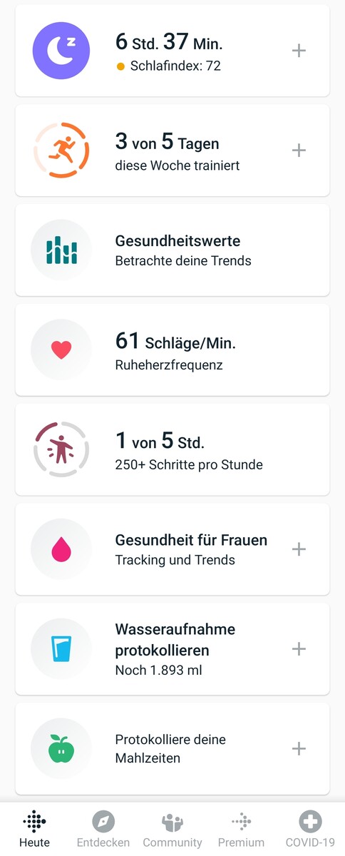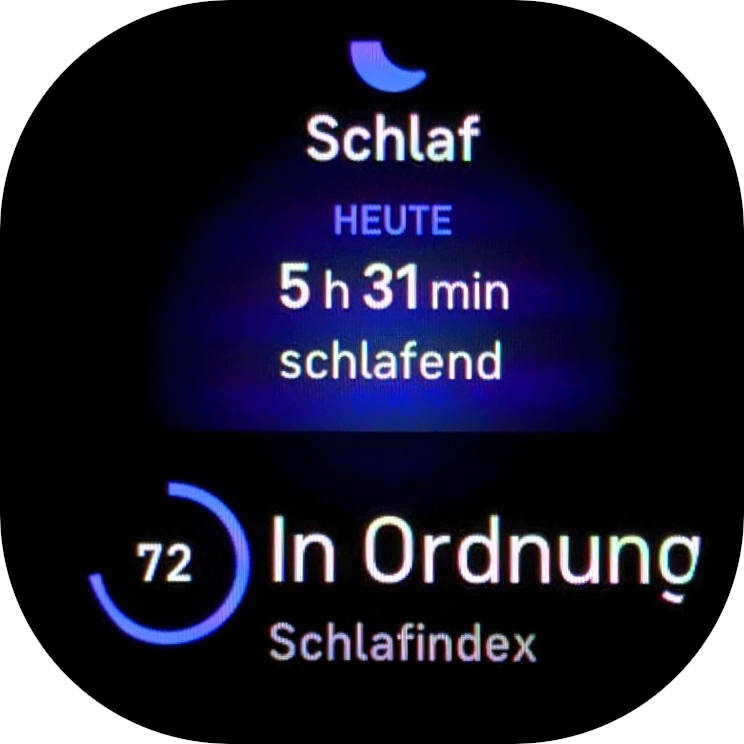 Die Geschwindigkeit der Sense lässt gelegentlich zu wünschen übrig. Öffnet man beispielsweise das Heute-Dashboard mit den täglichen Schlaf- und Aktivitätsdaten, blickt man gut 5 Sekunden auf ein regungsloses Display.