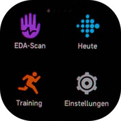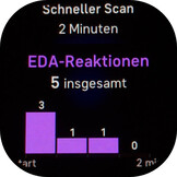 Ein weiteres Verfahren erfasst elektrodermale Aktivitäten der Haut (EDA-Scan). Registriert die Sense während eines etwa zweiminütigen Scans eine veränderte elektrische Leitfähigkeit der Haut, kann dies ein Hinweis auf emotionalen Stress sein. Der Test wird in Ruhe durchgeführt und wirkt allein dadurch mitunter senkend auf die Herzfrequenz. Diesen Effekt kann man mit Entspannungsübungen auf der Sense und in der Fitbit-App unterstützen.