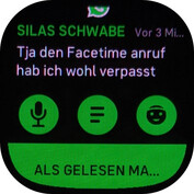 Benachrichtigungen bleiben stehen, bis man sie löscht oder als gelesen markiert. Auf WhatsApp-Nachrichten kann man mit einem Emoji, einer vorgefertigten Antwort oder per Sprachdiktat antworten. Das klappte im Test gut, setzt aber voraus, dass das Smartphone in der Nähe ist und die Fitbit-App Hintergrundrechte hat.