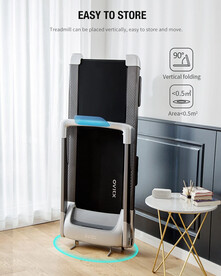 Die Trainingsdaten lassen sich entweder über das LED-Display oder in Verbindung mit der Fitshow-App einsehen. Auch mit den Apps Kinomap und Zwift ist das Laufband kompatibel. Sie sorgen dafür, dass man durch 3D-Welten laufen kann und stehen zudem mit Videos und Trainingskursen zur Seite. Und nach dem Training lässt sich das Xqiao Ovicx Q2S Plus zusammenklappen und platzsparend lagern.