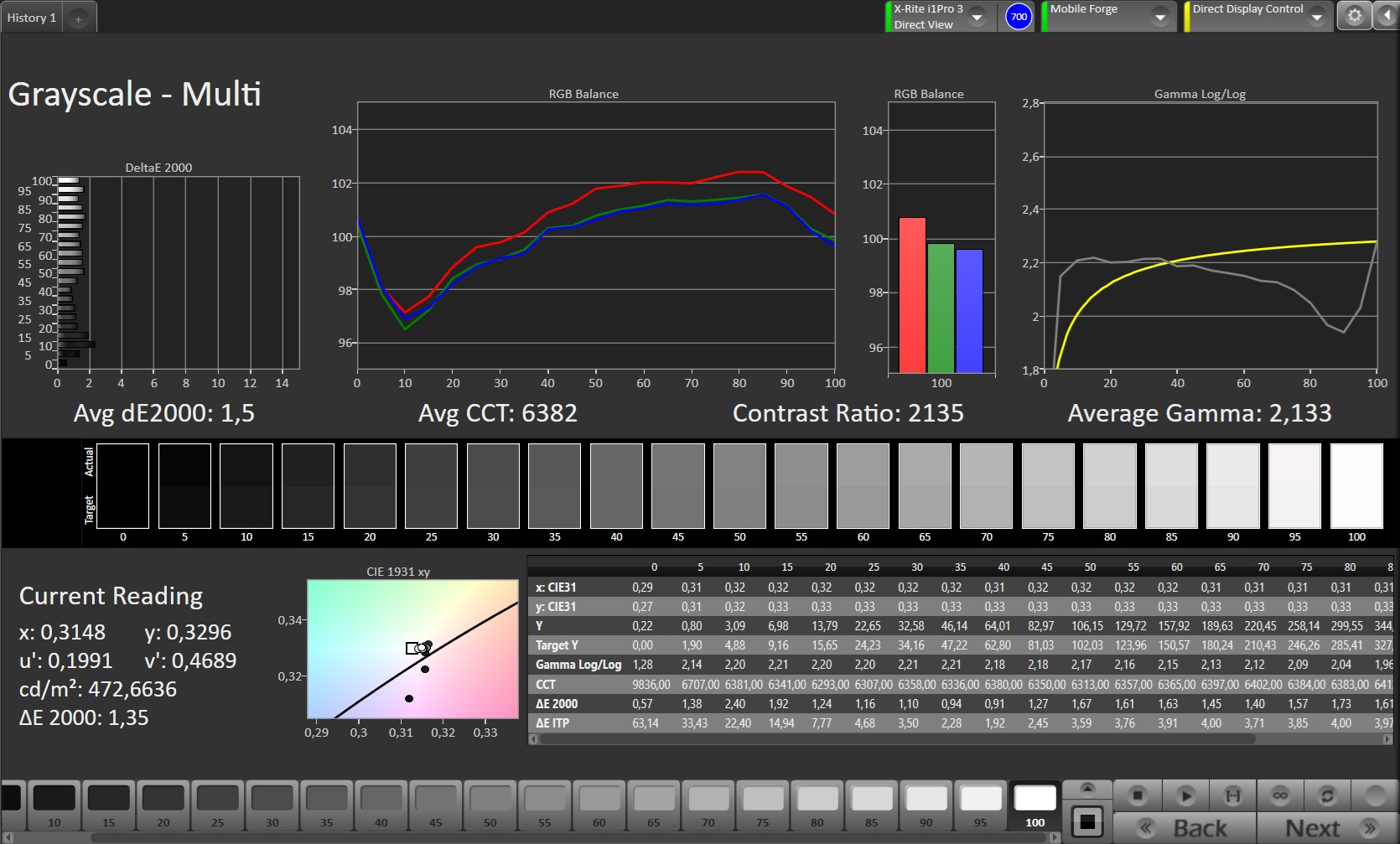 ΔE Greyscale Calman: 1.5 | ∀{0.09-98 Ø5}