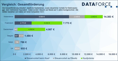 Viele private Käufer unterschätzen allerdings den zusätzlichen Einfluss von Steuervorteilen, die schnell mehrere Tausend Euro ausmachen können. In den Niederlanden sorgt die große Steuerersparnis sogar dafür, dass die Gesamtförderung fast doppelt so hoch ausfällt wie in Frankreich.