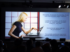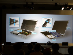 Wie bereits bei verschiedenen Herstellern wie Acer zu sehen, werden 2012 auch deutlich mehr Ultrabooks mit 14 oder 15,6 Zoll auf den Markt kommen. Aktuell sind mehr als 75 Modelle für 2012 avisiert, so Eden. Als weitere Ausstattungsmerkmale will Intel bei den Ultrabooks neben Spracherkennung auch Touchscreens etablieren. Auch die Designstudie "Nikiski" mit durchsichtiger Handballenablage als Touchpad gab es erneut zu sehen: diesmal bereits als funktionierendes Gerät.