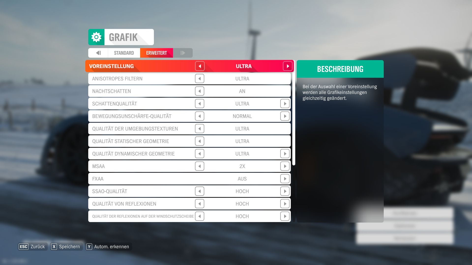 Pluspunkte gibt es auch für das Grafikmenü, das sich aufgrund der vielen Optionen in die Reiter „Standard“ und „Erweitert“ aufteilt. Achtung: Um das eingebaute FPS-Lock zu umgehen, muss man nicht nur V-Sync abschalten, sondern auch die Framerate auf Variable ändern. Damit die Optik nicht automatisch an die Leistungsfähigkeit des Rechners angepasst wird, ist darüber hinaus eine Deaktivierung der dynamischen Optimierung nötig. Die meisten Stellschrauben tummeln sich im Advanced-Menü, das praktischerweise mehrere Presets enthält. So lässt sich die Gesamtqualität schnell mit einem Klick verändern, wobei jeder Preset-Wechsel einen Neustart erfordert (wird jedoch nicht immer vom Spiel erwähnt, Bug?) und die Ladezeiten selbst mit SSD recht lang sind.